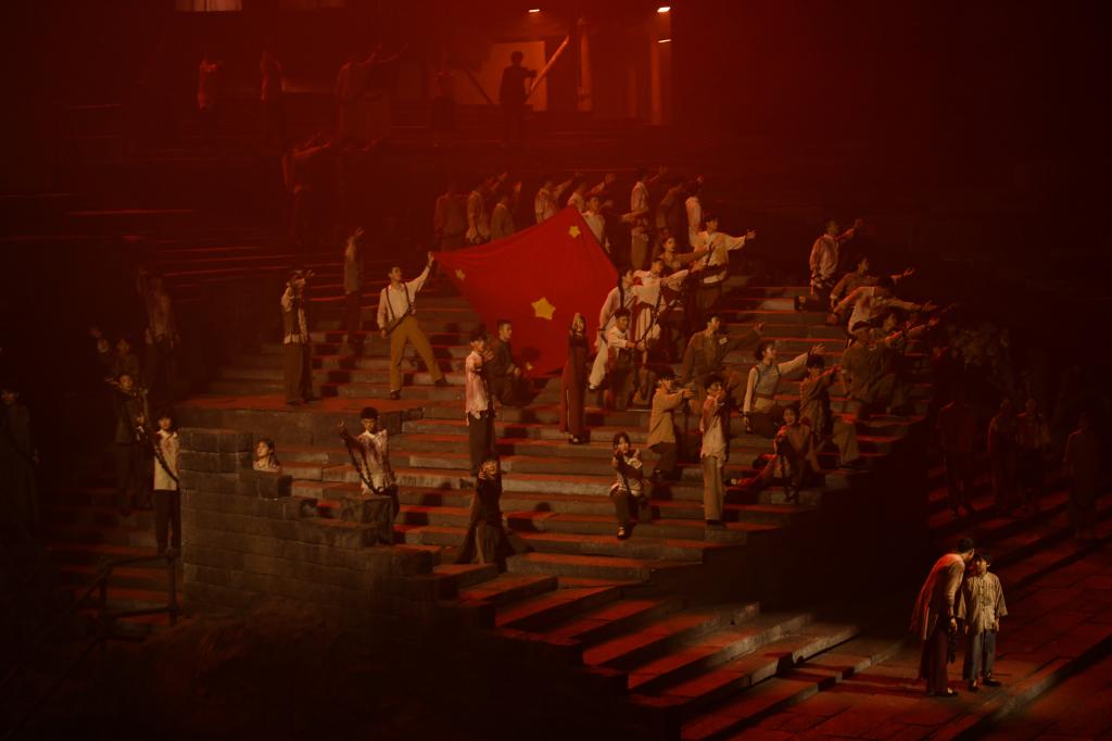 2021年7月1日正式首演的大型红色舞台剧《重庆·1949》以更广阔的时空维度全新演绎了“红岩经典”。剧目故事以重庆解放前夕为背景,以磁器口为中心,多条主线并行演绎。70分钟的演出时间,360度旋转式舞台沉浸式体验,《重庆·1949》凭借高科技的舞台表现手法,让老师们“穿越”回那座黎明前的“山城”,领略那段肃穆悲壮又波澜壮阔的历史。舞台恢弘的场景,编剧铿锵的台词,演员精湛的表演,让老师们数度落泪,让那段在可歌可泣的历史在渐行渐远的岁月长河中又再一次淋漓尽致地呈现大家眼前,让红岩精神更加饱满而深刻地浸润每一位观众的骨髓。生动形象的情景剧,把革命先烈不畏牺牲的坚毅果敢和坚定无悔的爱国情怀鲜活的呈现到每一名党员同志眼前,展现了重庆这座伟大城市的红色历史,是一次深刻的红岩文化洗礼。