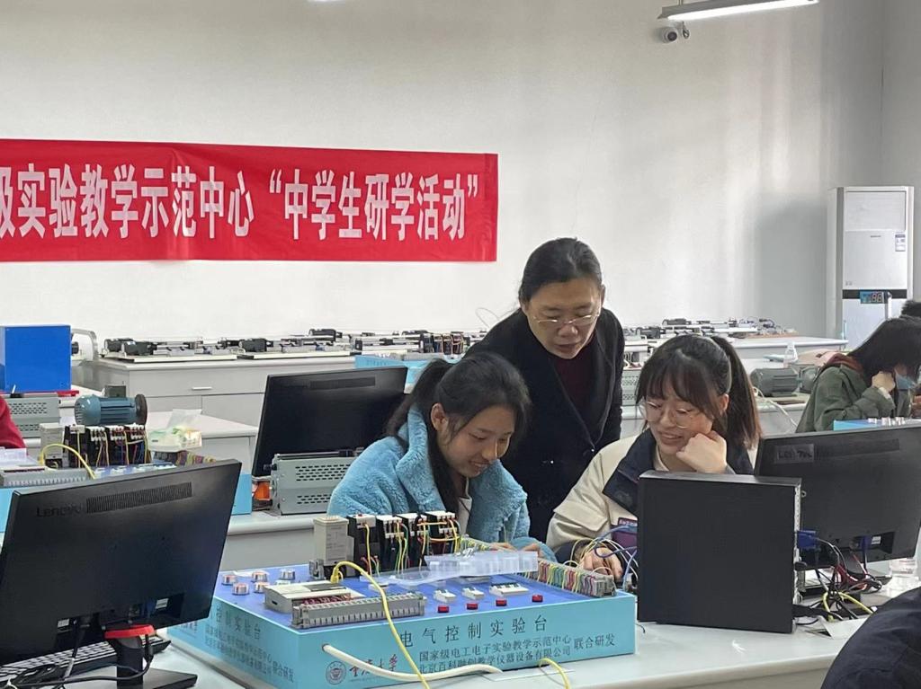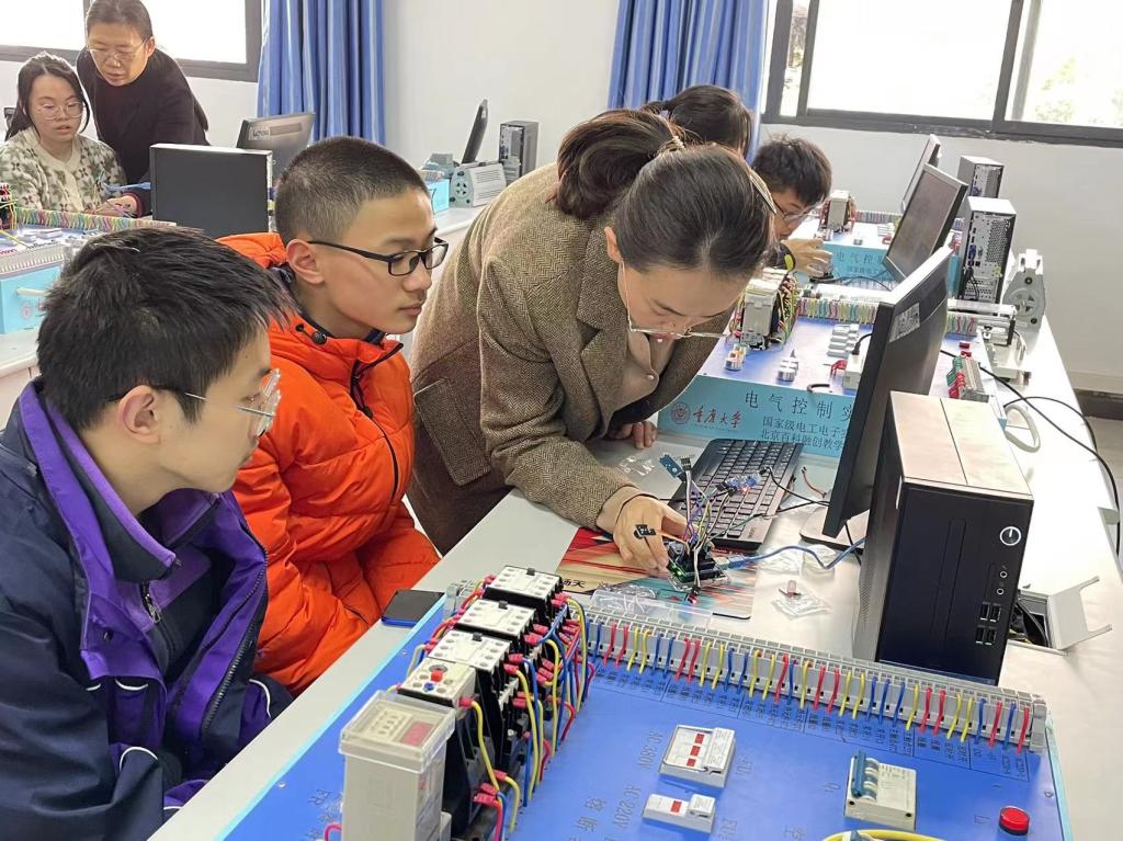 电工电子蜜桃直播-探花直播-色播级实验教学示范中心组织的系列中学生研学活动在虎溪校区正式启动。此次活动旨在培养学生能够发现问题、善于提出问题、勤于思考问题、合作探究问题、全面认识问题、正确解决实际问题的能力,同时提供给中学生一次体验大学生活的机会,让他们提前了解大学专业、感受大学的学习氛围、坚定大学专业目标。