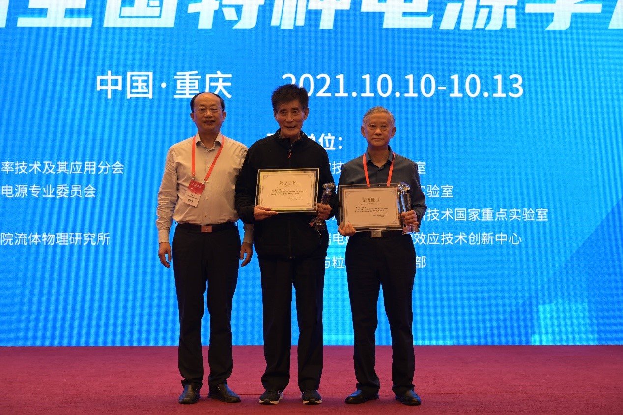 姚陈果教授团队研究成果入选代表性科技进展,核学会脉冲功率技术及应用分会石金水理事长在大会闭幕式上为作者团队代表颁发了证书。
