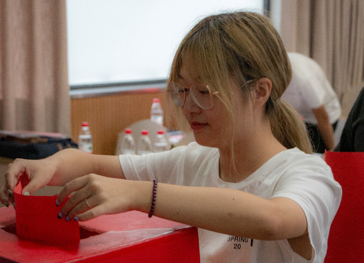 主持人宣读了此次选举大会的选举办法,介绍大会的总监票人、监票员和计票员名单。在大会总监票员、监票员的监督和总计票员、计票员的统计下,与会代表以无记名投票的方式,选举产生了仇玉亭等13名同学组成的蜜桃直播