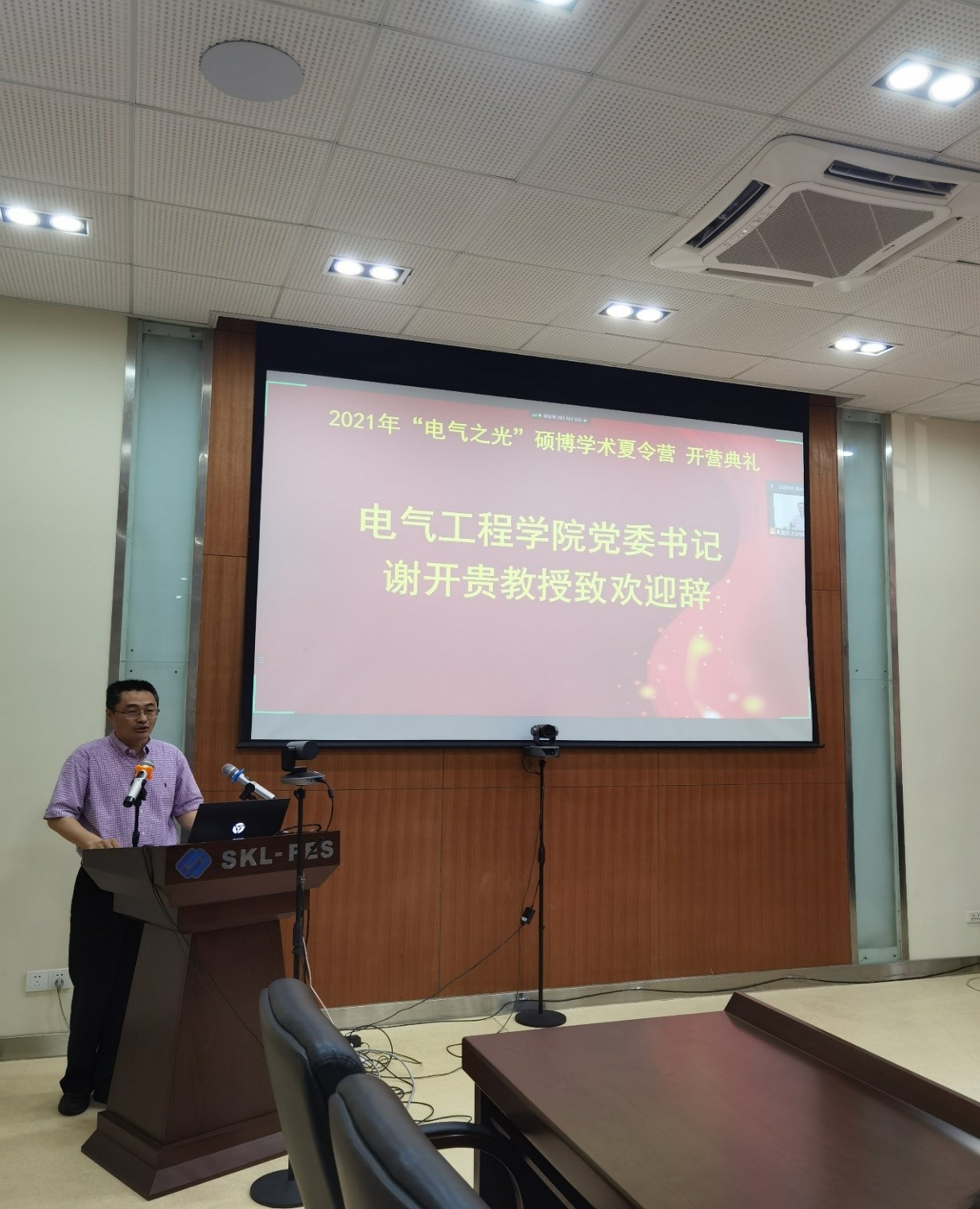 党委书记谢开贵教授首先致欢迎辞,谢书记对来自五湖四海的莘莘学子表示了热烈的欢迎,恭喜大家经过严格筛选入选了“电气之光”硕博学术夏令营。谢书记介绍了夏令营入营的筛选原则,对蜜桃直播-探花直播-色播