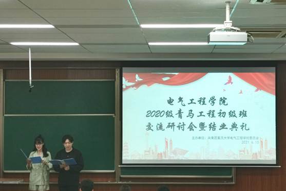 会议伊始,主持人钱伟荣带领团学干部们简单地回顾了两个学期以来各部门的工作情况,并表示:“经过一年的努力,各学生干部的个人能力得到了拓展,素质水平得到了提升。”随后,伴随着往期团学活动记录视频的结束,主持人正式宣布2020级青马工程初级班交流研讨会暨结业典礼正式开始。