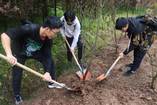 团委“3·12植树活动”在沙坪坝区凤凰镇南阳苗木基地进行。志愿者们亲手植绿,种下新苗,为生态文明建设添砖加瓦。