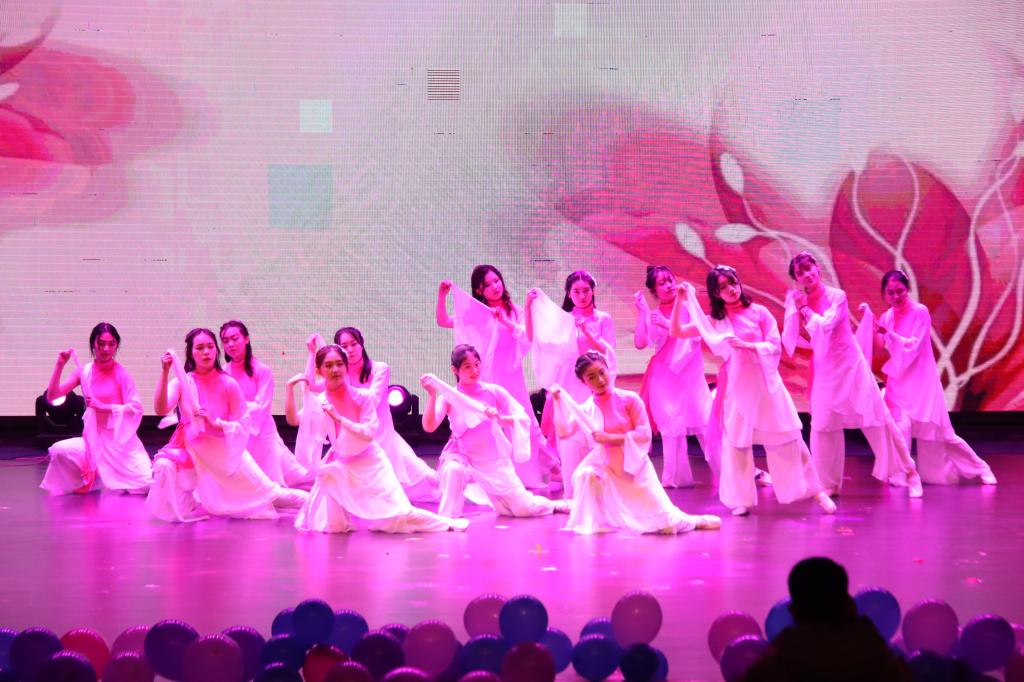之间美妙的缘分。舞蹈《一心一译》展现了学生们对于青春未来的热爱;歌曲串烧《我的青春我的国》民谣娓娓道来,歌颂祖国歌颂美好青春;教职工团队演绎的《三句半》则凭借押韵而不失幽默的语句,引得现场观众拍手叫绝。