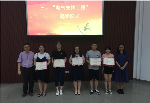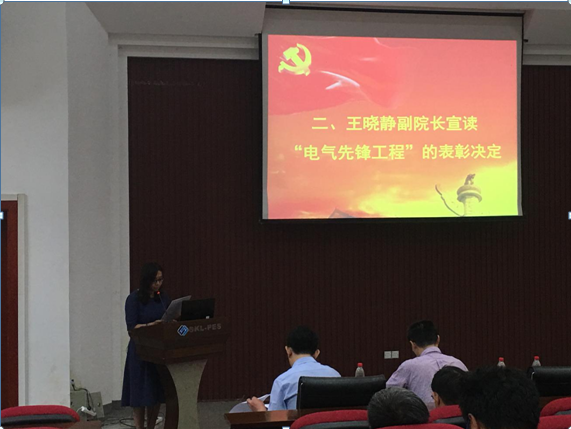 庆祝中国共产党成立98周年暨“两学一做”系列活动之2018~2019学年度“电气先锋工程”表彰大会在六教117学术报告厅隆重举行,全体教职工和获奖学生代表参加了表彰会,大会由蜜桃直播