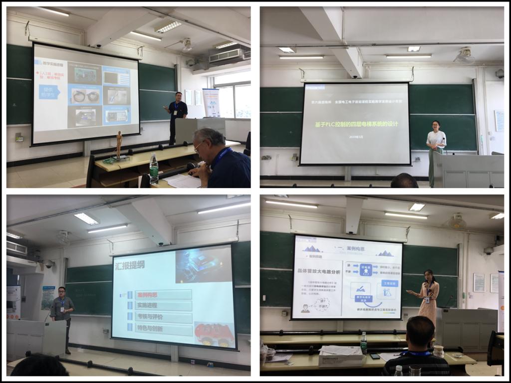孙韬老师组织我校的4个参赛团队和多名观摩教师到华南理工大学学参加了复赛,其中王唯、陶成伟、肖馨三位老师提交的“人体颈部弯曲状态实时监测系统的设计”荣获最佳创意奖及一等奖,赵一舟、罗凌雁、徐奇伟三位老师提交的“基于模型设计的趣味性智能四轮车设计”荣获一等奖,肖馨、龙利、串禾三位老师提交的“基于PLC控制的四层电梯系统的设计”荣获一等奖,胡熙茜、周静、张立群三位老师提交的“基于混合教学模式的单管电压放大电路探究实验”荣获二等奖。