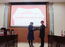 吕丹妮校友代表航天科工二院与张红春主任互赠纪念品。