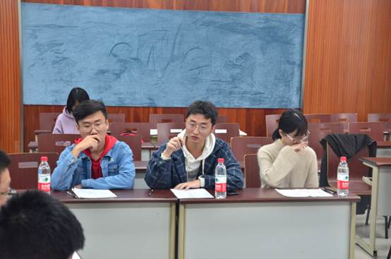之后便是双方四辩的对辩环节,对辩时的火药味渐渐浓郁了起来。双方势均力敌,打得难解难分,场面十分激烈。在对辩结束后,便进入了本次辩论赛新增加的部分——盘问环节。双方三辩需要在一二四辩的发言基础上,对其依次提问。本次比赛双方三辩都具有很强的洞察力,都抓住了对方辩友发言的漏洞,并在盘问过程中不断强调己方论点试图说服对方认同己方观点。盘问之后由双方三辩进行小结,比赛上部分告一段落。
