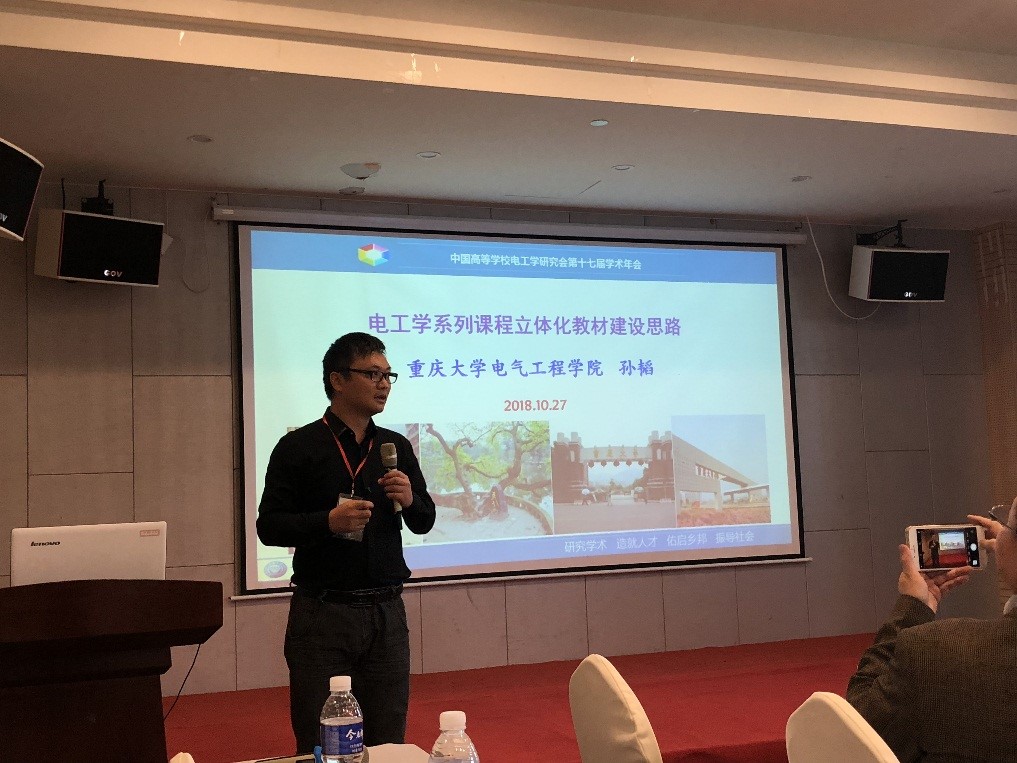 我院孙韬老师在教材建设分会场作了题为“电工学系列课程立体化教材建设思路”的报告,不仅向参会老师介绍了我院电工学系列课程的建设、蜜桃直播-探花直播-色播级规划教材的撰写与出版、新型态教材和数字教材的建设与出版情况,还与参会老师们分享了我院电工学课程的在线开放课程建设及上线情况,得到了参会老师和高等教育出版社的关注和赞赏。