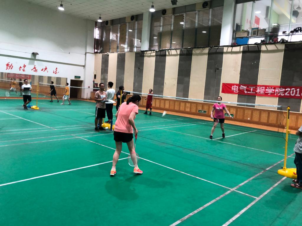 此次比赛设有男单、女单、男双、混双四个项目,来自电机与电器系、电力系统及其自动化系、高电压与绝缘技术系、电力电子与电力传动系、电工理论与新技术系、建筑电气与智能化系、学生工作办公室、院行政办公室等单位的40余名教师,组成的9支代表队同场竞技,为大家奉献了一场精彩的比赛。