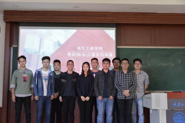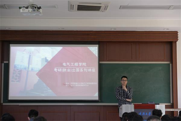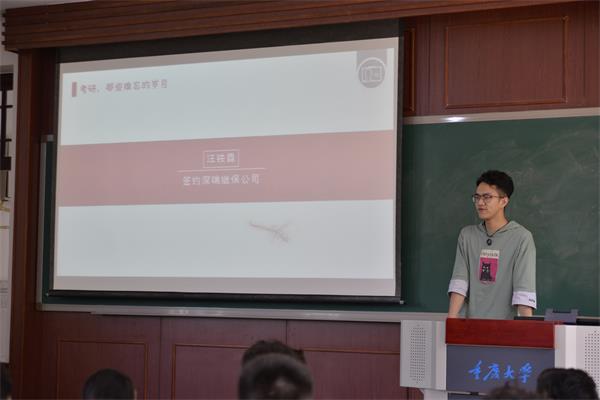 26日讲座就考研及就业进行相关问题的阐述。首先发言的是已经签约中国电网重庆南岸局的刁垠心同学,她就国网报名考试流程进行了详细的介绍,并且结合自己的备考经历让大家了解国网考试内容是比较基础的,让大家不再对考试太过于紧张。