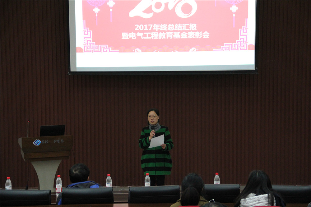 全体教职员工、离退休老师、部分学生代表齐聚六教117会议室,隆重举行2017年度工作总结暨电气工程教育基金表彰会,活动由蜜桃直播