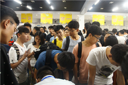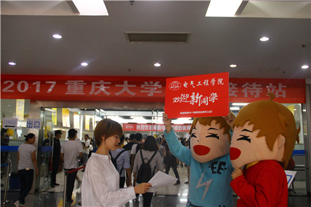 今年的迎新接待站依然设置在主教学楼一楼大厅。拾阶而上,跟随着工作人员的引导和现场的标识指令,新生们可以很容易找到电气蜜桃直播