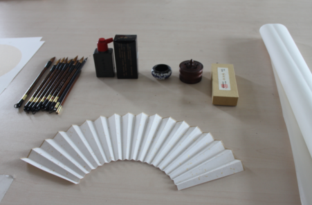 为了活动的圆满举办,我院CIDP“重拾诗词之美”项目组首先购置了毛笔,墨汁,宣纸等文房四宝,接着准备了供大家书写的特别材料,扇面。希望大家亲手书写的折扇在带来清凉的同时,也带来悠远的诗意。