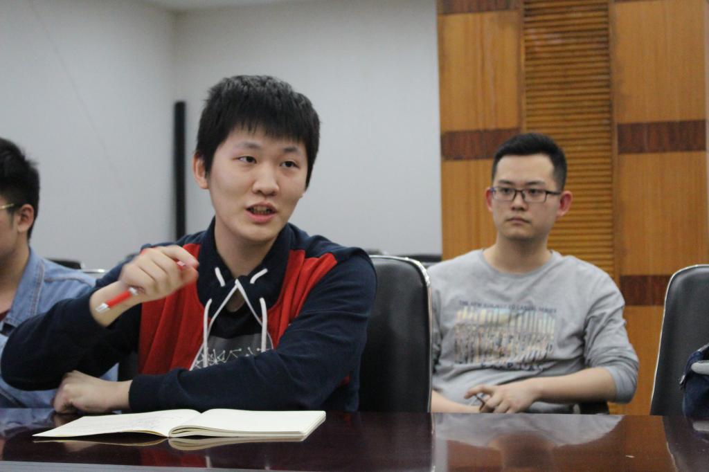 大三大四保研、考研、就业系列交流会在A区学生活动中心A17顺利进行 ,13级林星宇、李后英、刘人豪等优秀同学介绍了他们在求职、考研、保研等 方面的经验,并与14级六七八班的同学进行了面对面的交流,会议由13级助管 张炼同学主持。