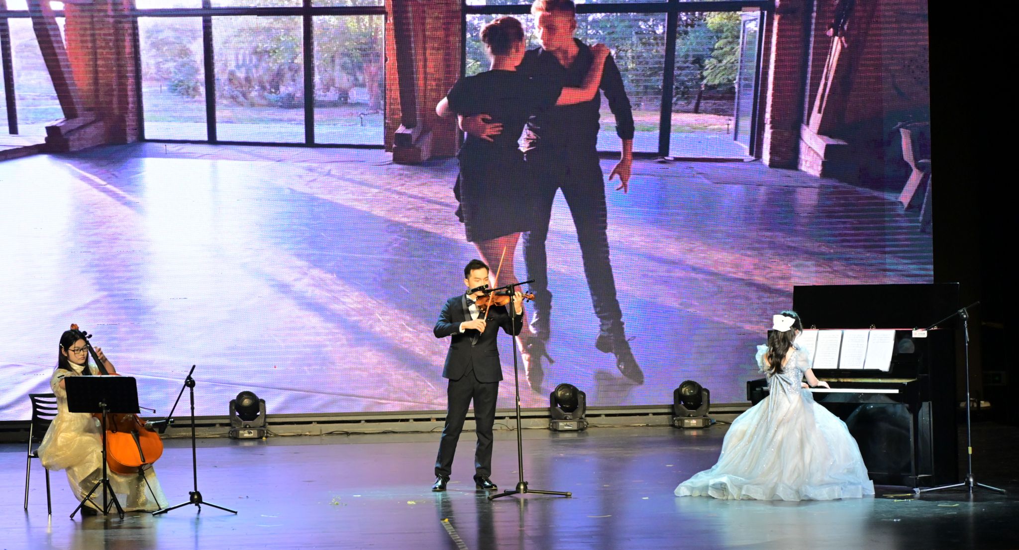 联欢会第三个篇章“砥砺前行·谱新篇”突出电气师生对未来的期许和奋进的精神。歌曲《下一个天亮》以动人旋律唱出对未来的憧憬和勇敢前行的决心。舞蹈《青蛇》用舞姿展现出青春的活力与无限可能。优美的《Love Story Meets Viva La Vida》,以精湛的演奏,用音符勾勒出青春岁月中的情感故事。最后教师合唱《难忘今宵》,以激昂的歌声为这个难忘的联欢会画上完美的句号。