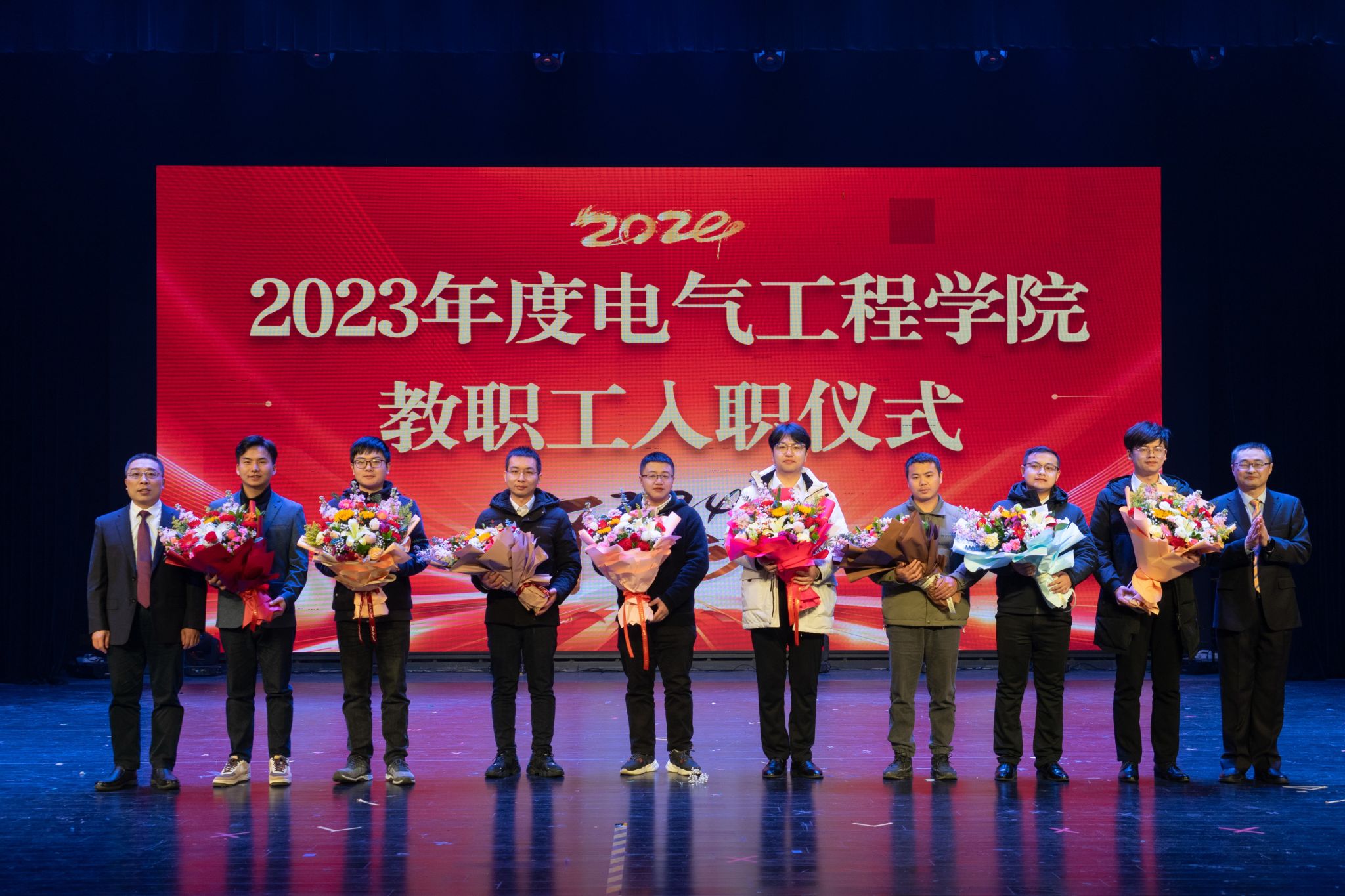 为今年光荣退休的邱道平、张兴老师以及新入职的李雨泰、冯谟可、杨国林、雍培、陈冠宏、赵成、张昂、穆峰等8位教师献花,感谢退休教职工数十年如一日地无私奉献,同时欢迎新入职教师为蜜桃直播