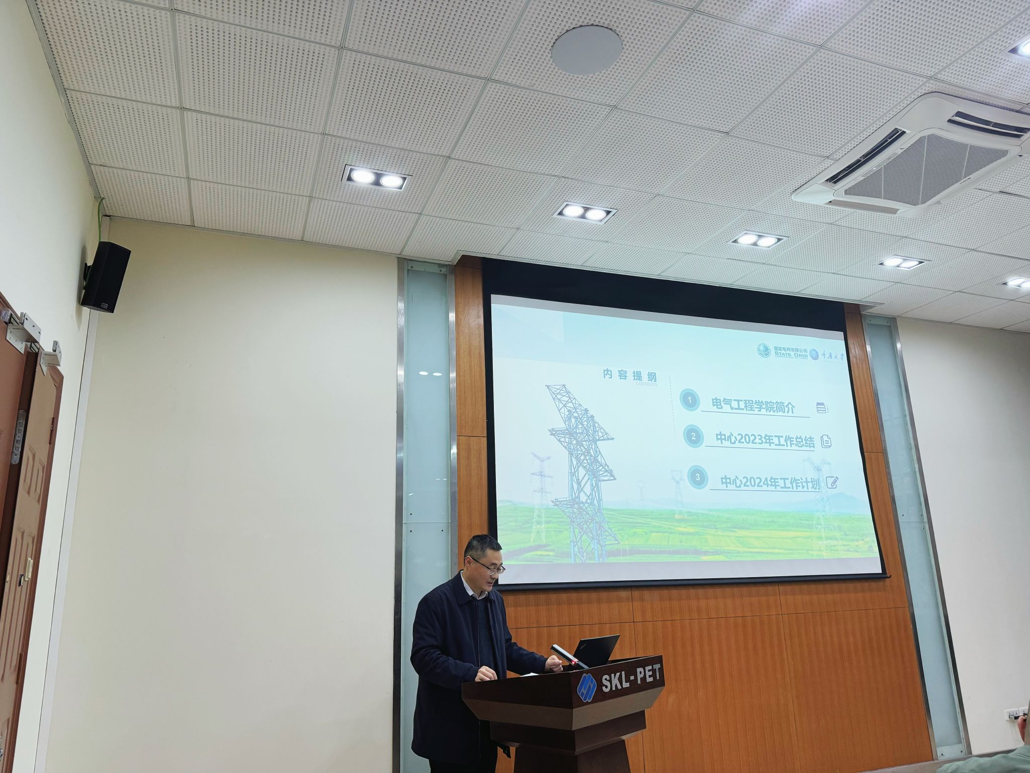 院长谢开贵从立项国网总部科技项目、与国网各公司联合申报科技成果、联合人才培养和合作成效等方面汇报了联合研究中心2023年度工作,结合双方优势特色,从高电压绝缘与灾害防御、电力装备及系统安全可靠性、重庆电网安全稳定控制等方面汇报了2024年度技术方向推进工作计划。