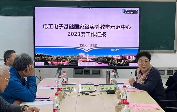 随后,刘晔教授主持了本次教学指导委员会会议,示范中心主任侯世英教授分别从实验条件建设、教学改革及成果、人才培养及成效、示范辐射作用等方面作了示范中心2023年度的工作汇报,并提出了示范中心在数字化教育转型背景下基础设施升级、教师队伍建设等方面的后续发展规划,为示范中心的持续发展指明了方向。