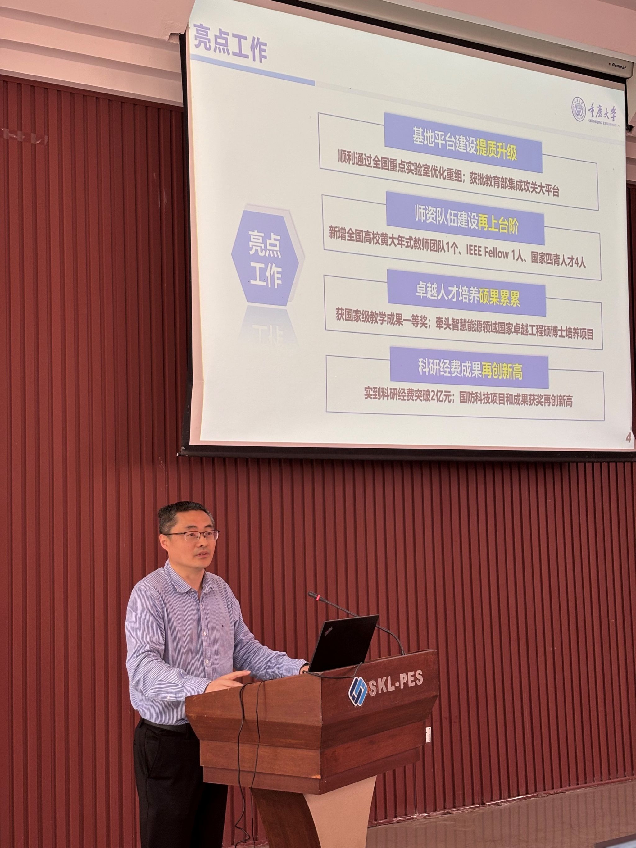 党委书记胡建林,院长谢开贵,党委副书记王晓静、吴嘉,副院长杜雄、杨鸣,输变电装备技术全国重点实验室副主任李辉、曾礼强,蜜桃直播-探花直播-色播野外科学观测研究站专职副站长张志劲出席会议。大会由王晓静副书记主持。