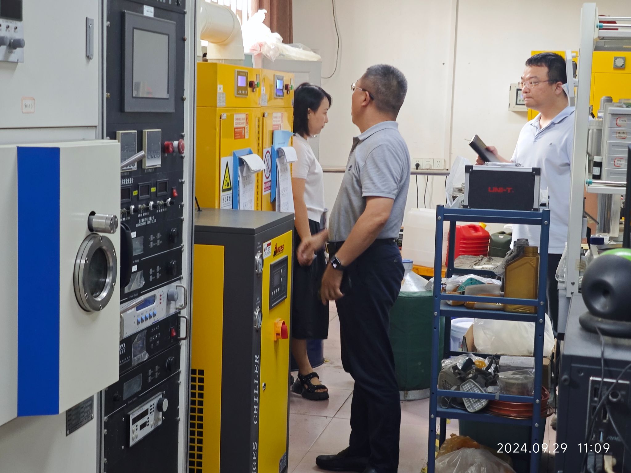 在检查过程中,胡建林书记带领检查组深入各个实验室,重点检查了实验设备及仪器安全、用电安全、危险化学品管理、特种设备使用、消防设施配备等关键环节。