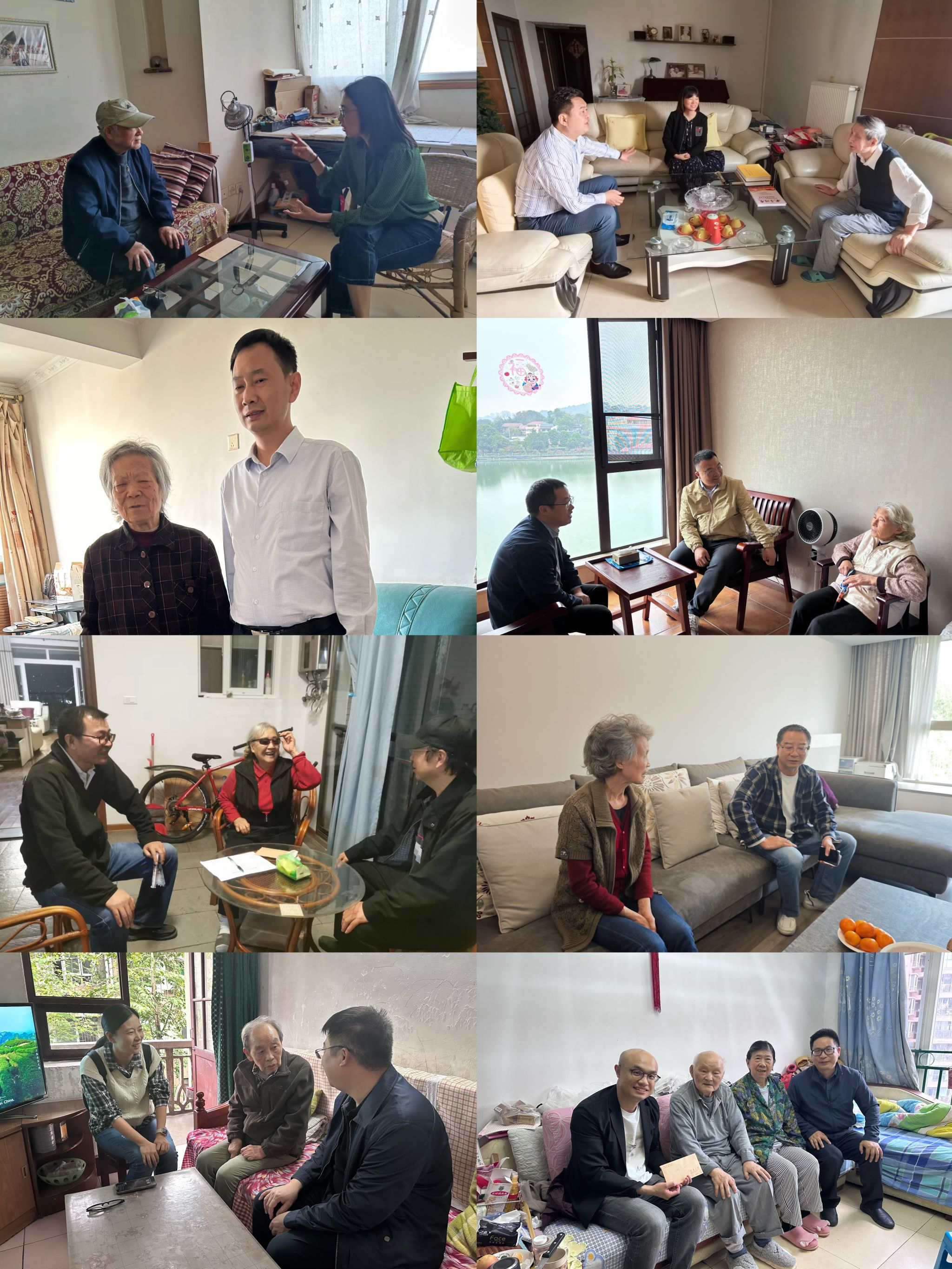 党委书记胡建林、院长谢开贵带领党政领导班子,各系、办、中心主任和支部书记开展了重阳节走访工作,陆续慰问了46位离退休教师,并为他们送上了深切的问候和美好的祝愿。