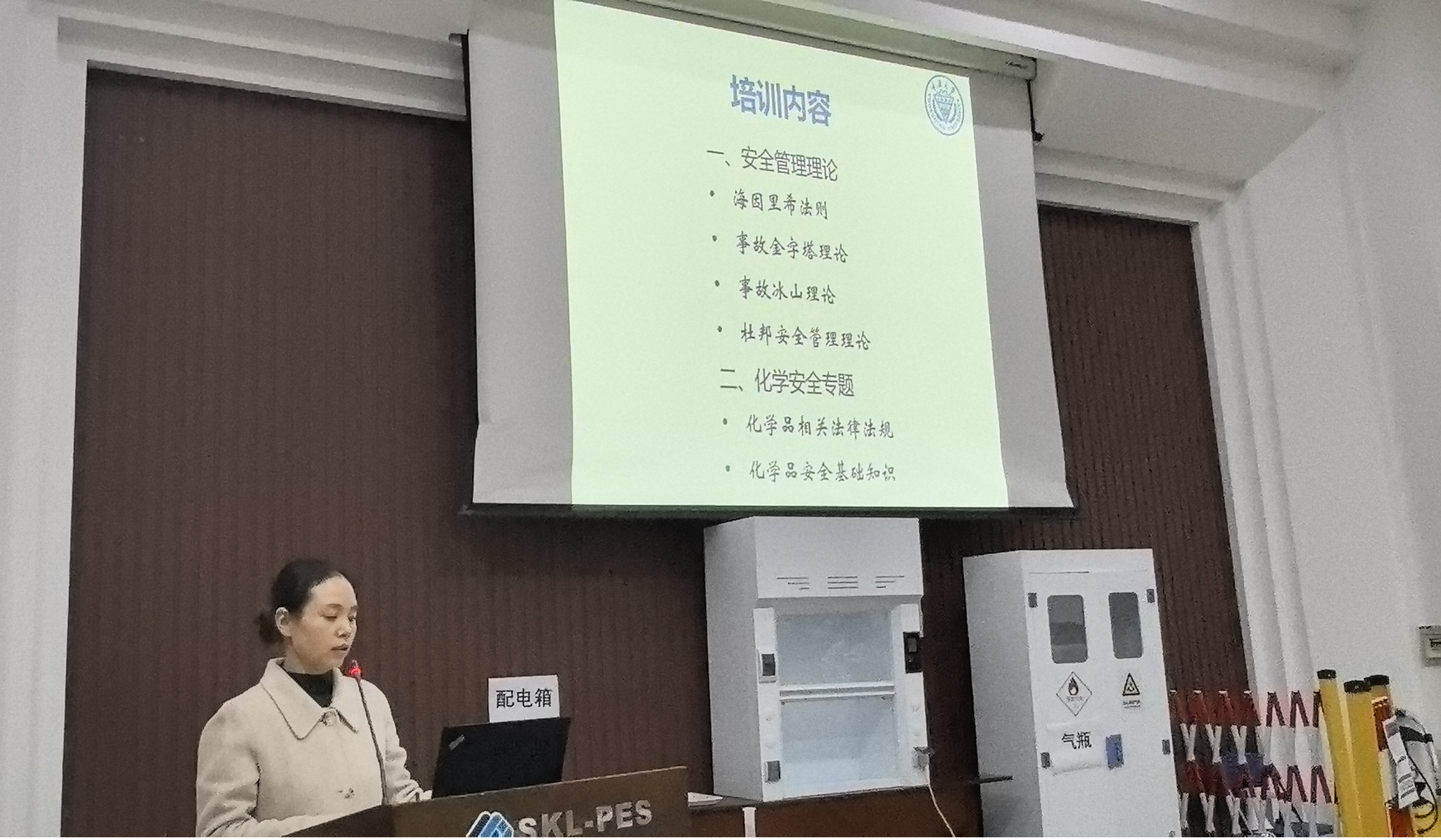 随后,陶熊新为师生们带来了安全管理与化学品安全讲座。陶老师结合自身在化工学科领域的知识和经验,深入浅出地讲解了实验室安全管理的重要性、化学品的安全使用与储存规范,以及应对实验室安全事故的基本方法和技巧。讲座内容丰富实用,针对性强,受到了在场师生的一致好评。