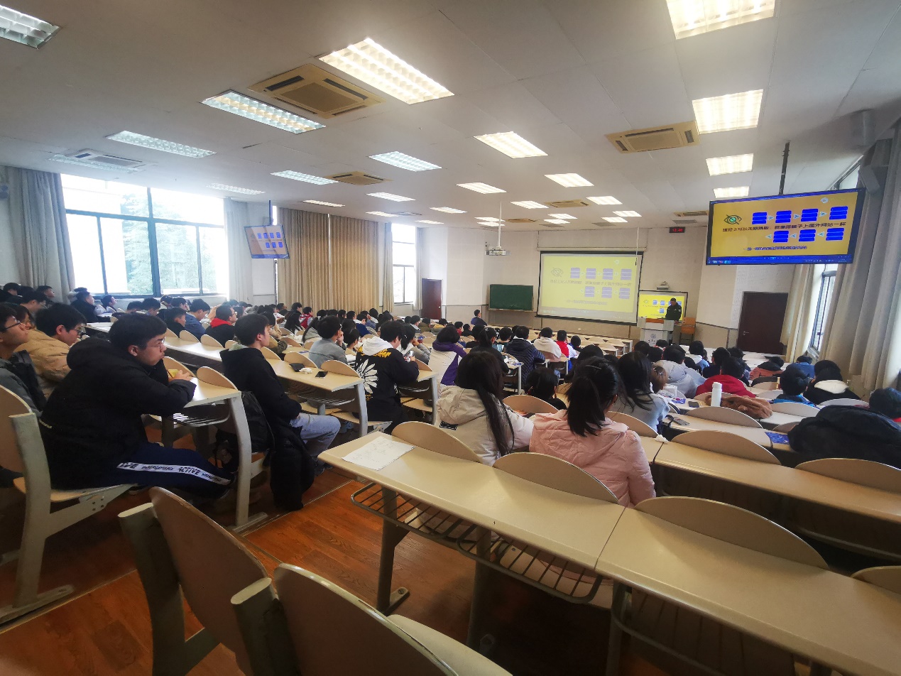 2020级辅导员喻惠、2020级兼职辅导员符东和2020级本科生参加讲座。