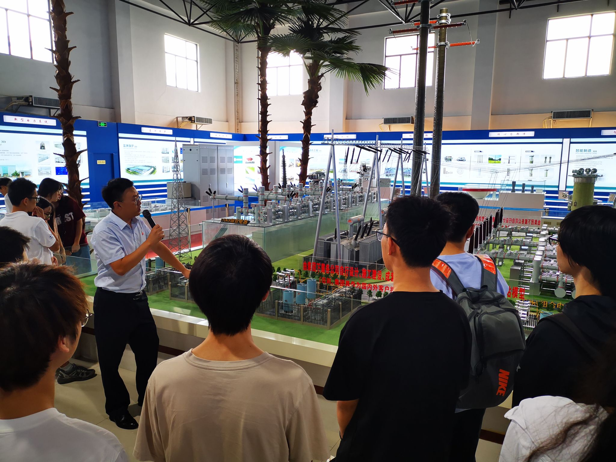接下来,实践团成员在李峰的带领下对泰开集团总部展厅进行观摩学习,李峰为大家讲解了泰开集团的发展历程、主营产品、蜜桃直播、校企合作等。隔离开关、变压器、电线电缆以及电力特种车等各式各样的输配电产品激发了实践团成员们对电力装备研发、制造、调试的浓厚兴趣,参观过程中大家相继提出疑问,同企业人员热切交流。通过此次集团总部参观调研,实践团成员对我国高压输电行业发展历程及输配电装备生产研发领域有了更深刻的认知,对泰开集团也有了较为全面的了解。